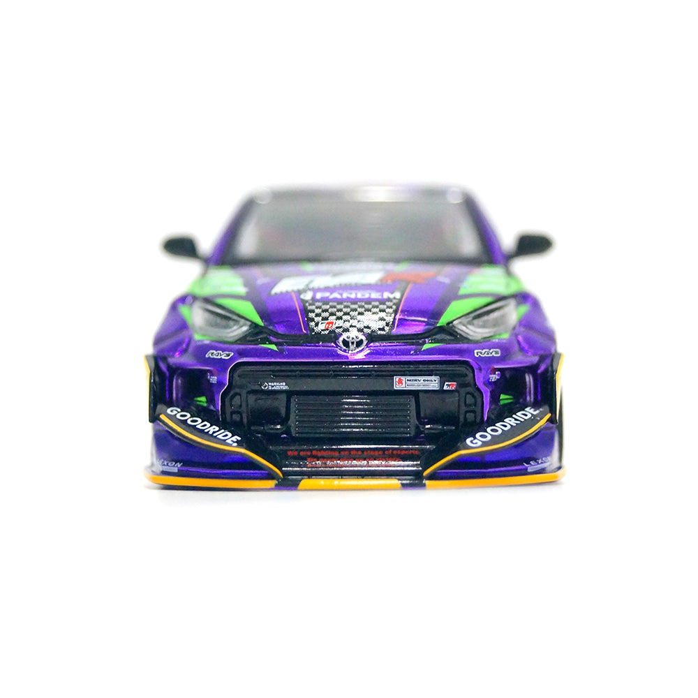 本モデルは「FORMULA DRIFT JAPAN 2024」のFDJクラスに参戦した「エヴァRT初号機GOODRIDE GRヤリス※」をモデルとした、ハイクオリティな1/64スケールのミニカーです。